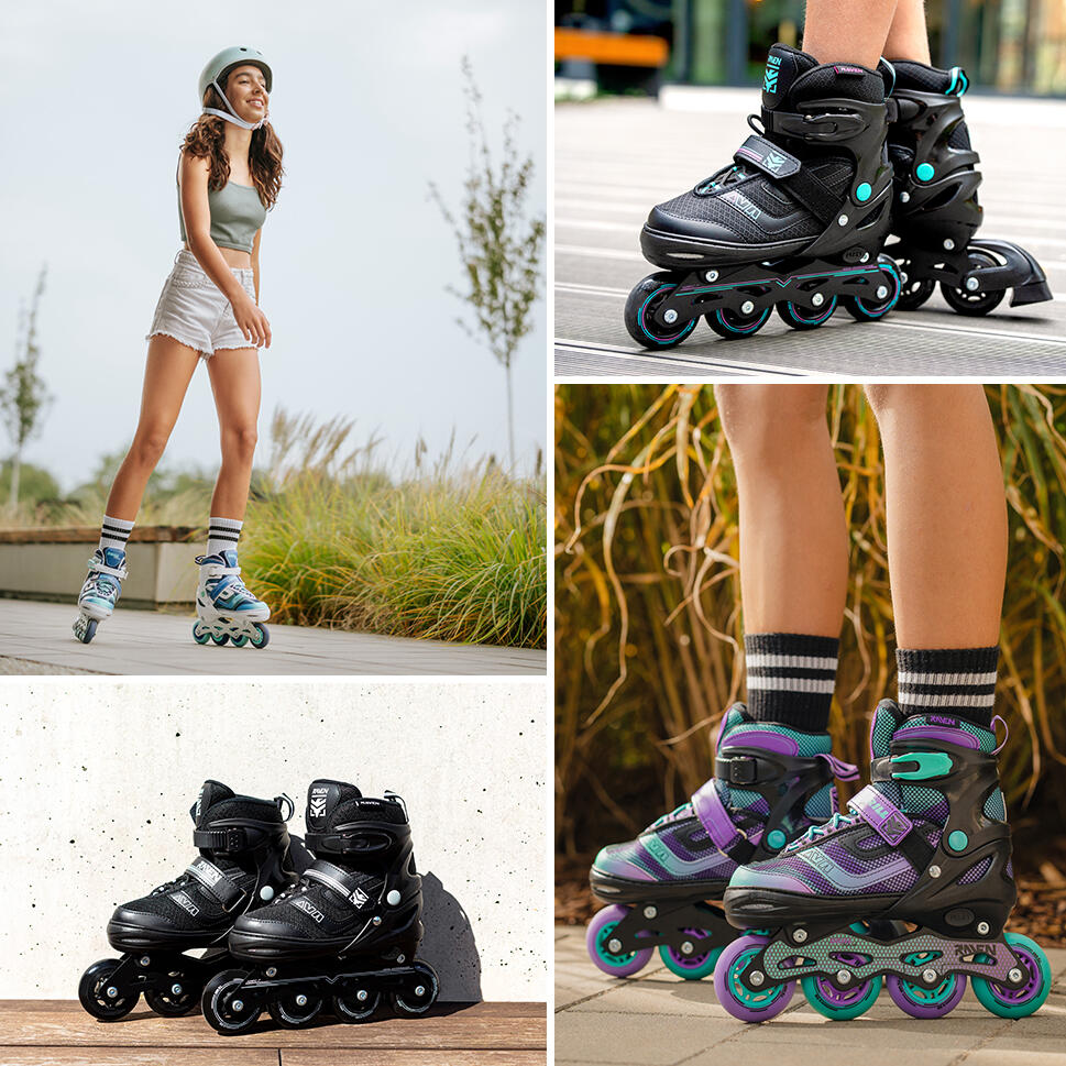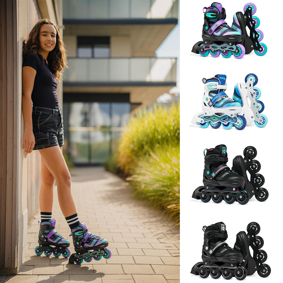 Ролики Регулируемые Raven Drill 38/42 Черный/Королевский фиолетовый/Аквамариновый зеленый